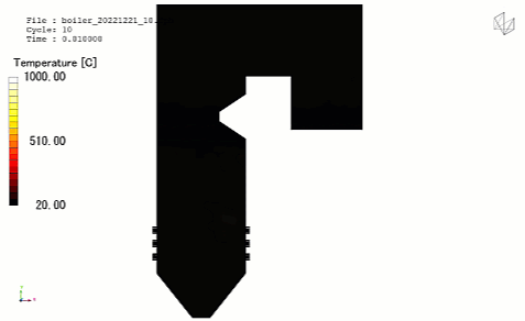 Selain itu, simulasi CFD dapat digunakan untuk mengevaluasi desain burner, posisi inlet udara, serta geometri ruang bakar. Dengan optimasi desain tersebut, proses pembakaran dapat menjadi lebih stabil, distribusi temperatur menjadi lebih merata, dan efisiensi energi sistem boiler dapat ditingkatkan.
